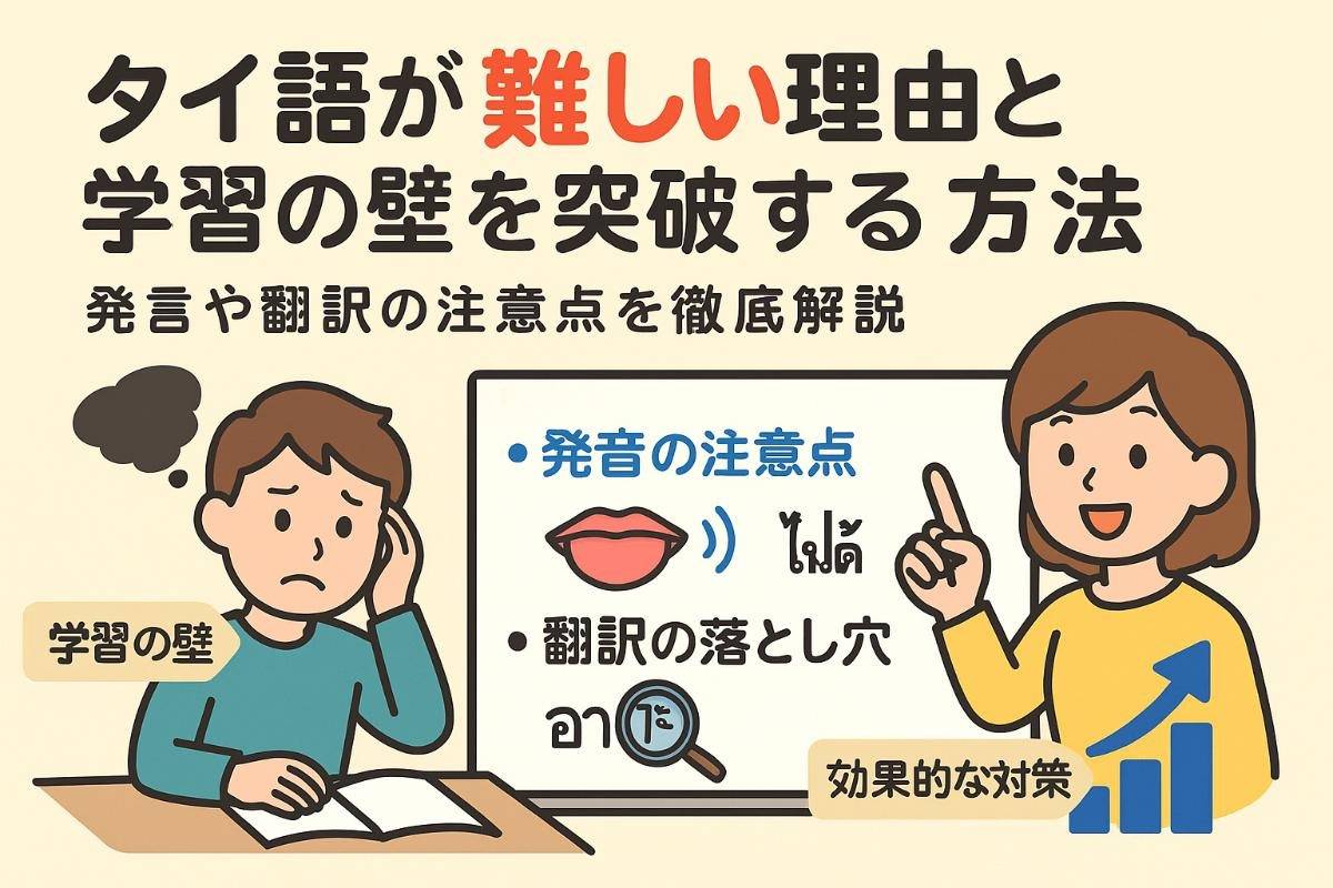 日本人がタイ語を学ぶ際には、特有のつまずきポイントがいくつかあります。特に母音や子音の区別、声調の維持が難しいと感じる方が多いです。
